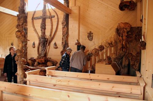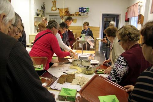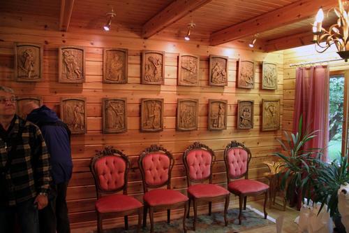 Sievissä Jorma Heiskasen puutaidetta ihailemassa